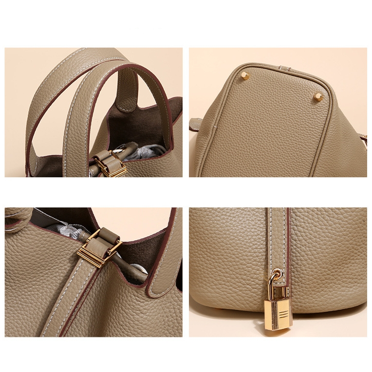 Lychee Pattern Picotin Lock Bucket Bag