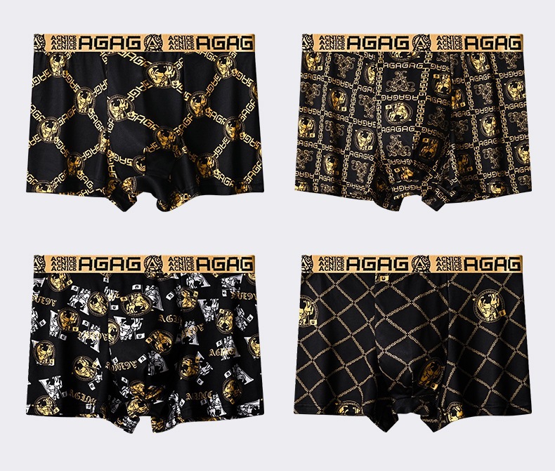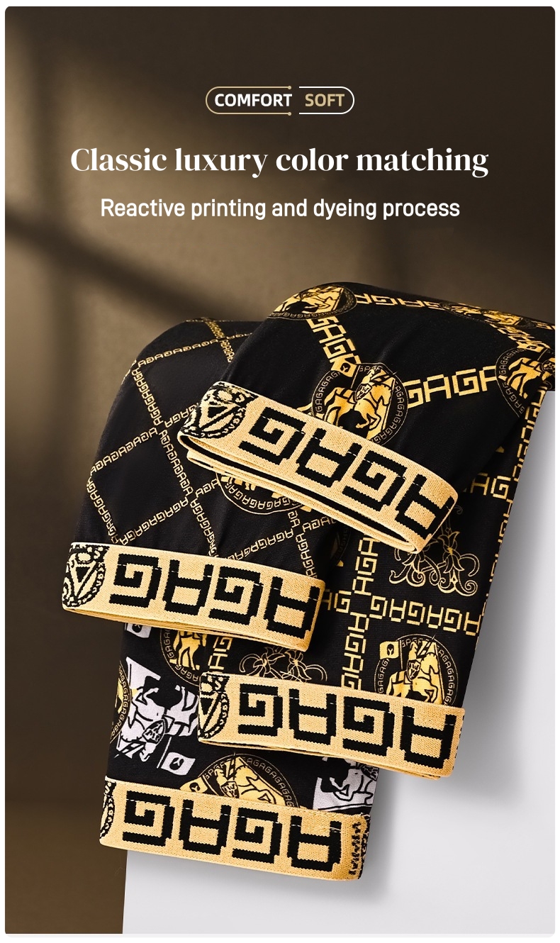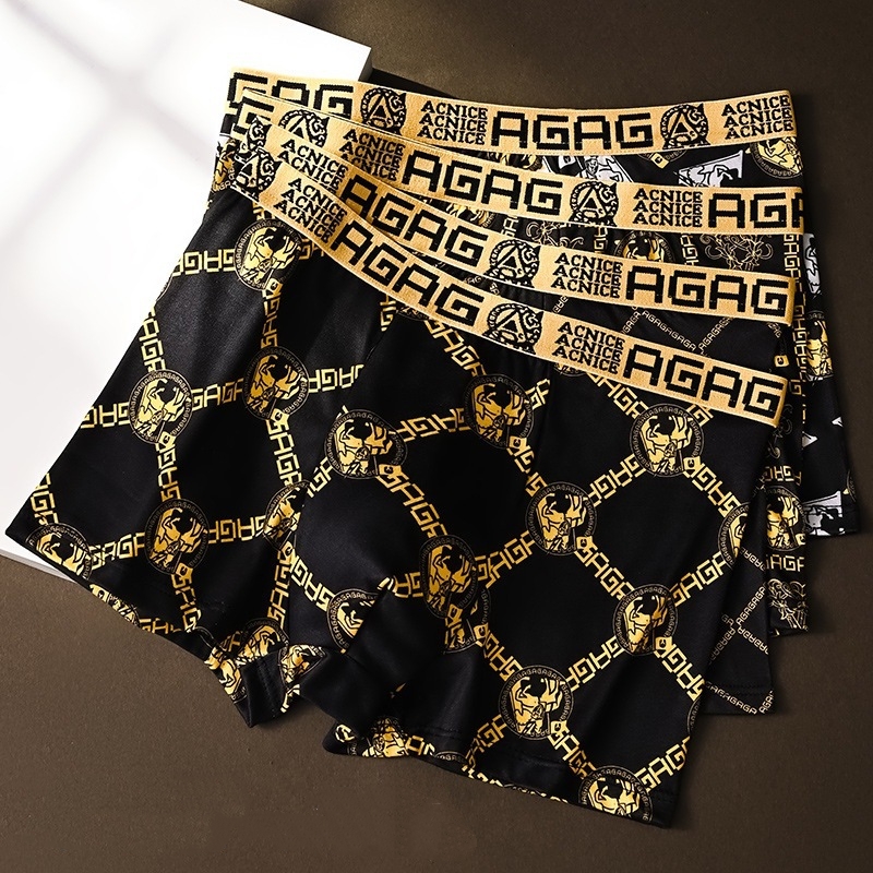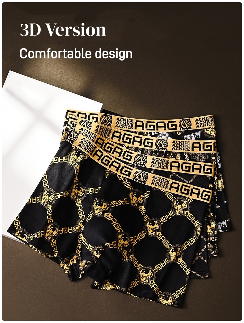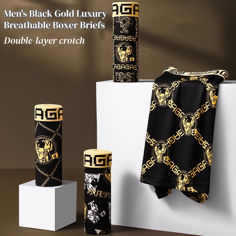 4 Pcs Men's Black Gold Luxury Breathable Boxer Briefs