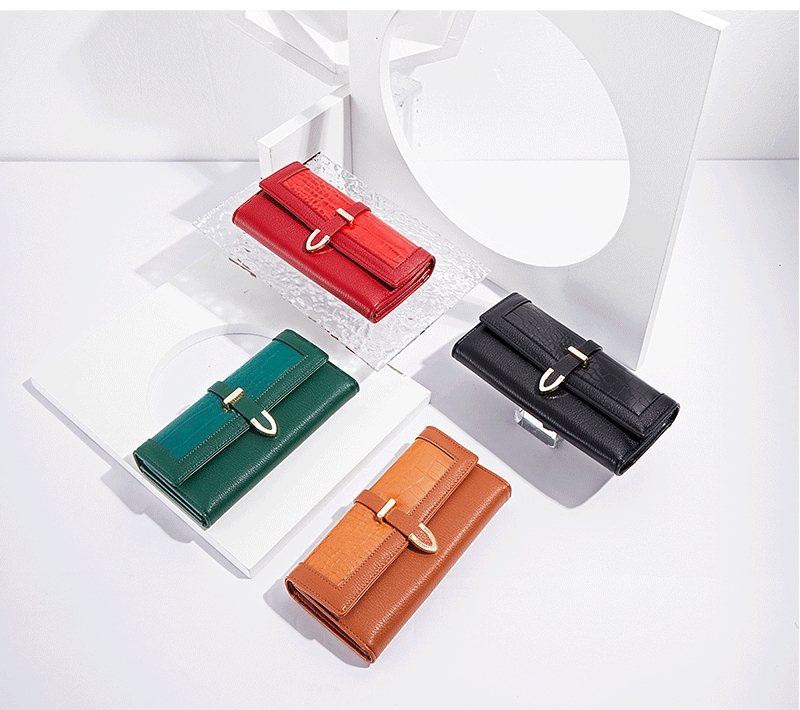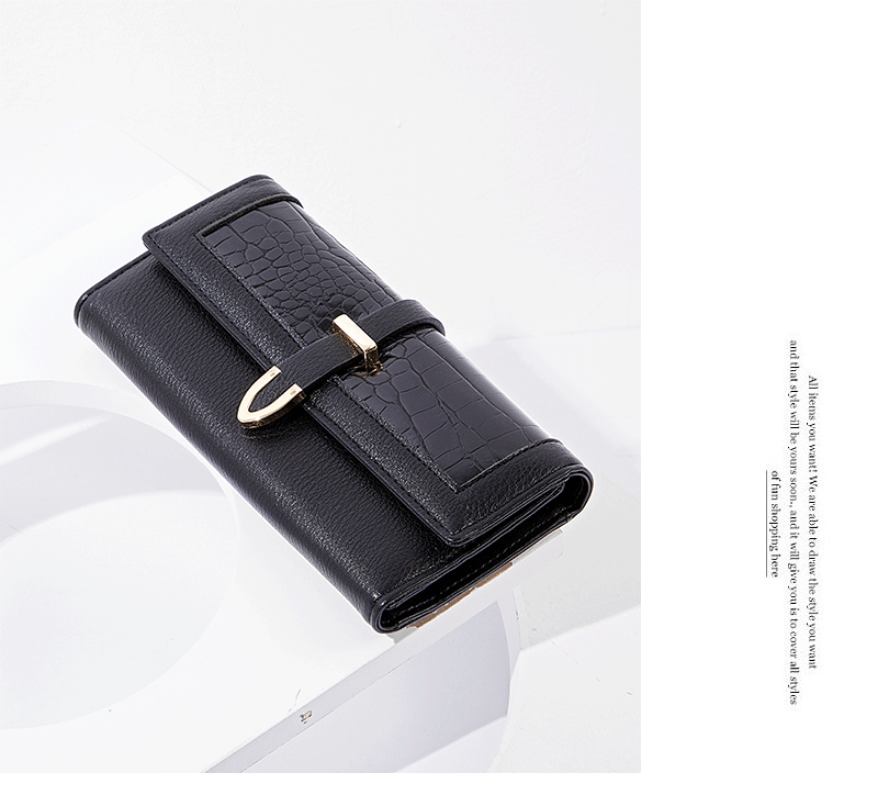 Fashion Crocodile-patterned Multi-layered Leather Long Wallet